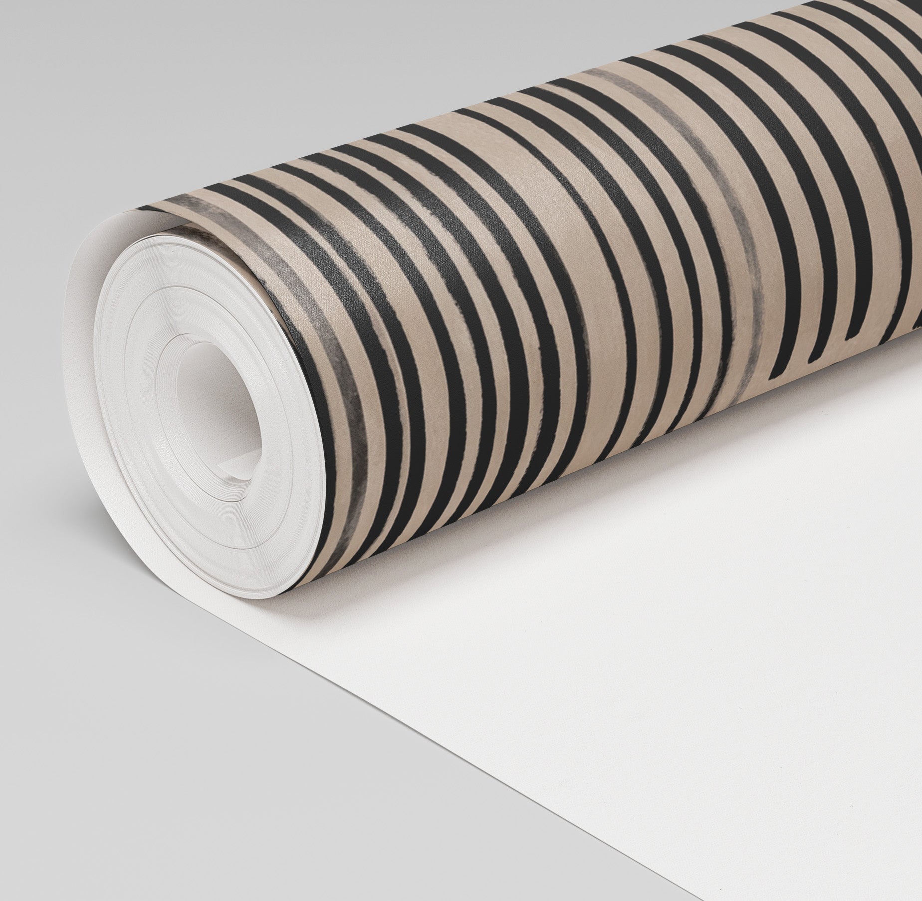 Transform your space with Axis Forge Wallpaper, a striking geometric design that commands attention. Bold black stripes intersect across a warm tan background, creating dynamic visual movement while maintaining understated elegance. Perfect for contemporary interiors, this modern pattern adds architectural interest to any room without overwhelming the senses. The sophisticated color palette complements both minimalist and eclectic décor, making it an ideal choice for those seeking refined style with edge.