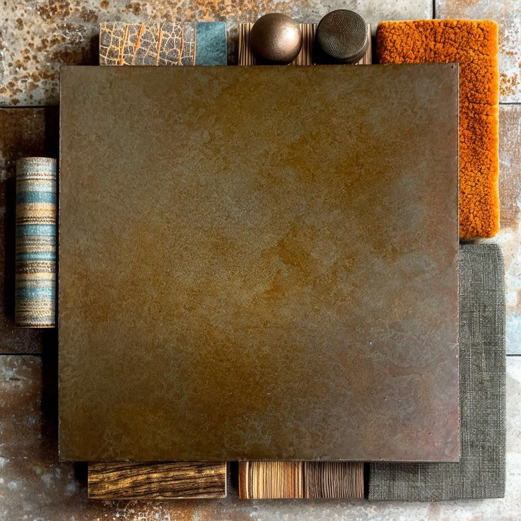 This sample showcases our Champagne Steel finish—a soft, golden-toned metal with a warm, organic character. Because this is a lighter finish, expect a broader range of natural variation in color, pattern, and texture. Each piece of steel responds uniquely in the finishing process, making no two surfaces alike. This sample offers a general sense of the tone, but the full beauty of the material lies in its subtle unpredictability—something to be embraced, not replicated.