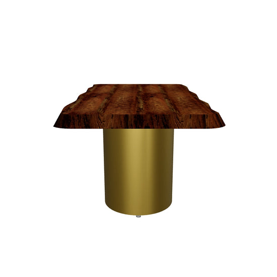 A harmonious blend of organic beauty and modern craftsmanship, the Louisa Dining Table is designed to make a statement. Featuring a stunning live-edge wood top that showcases the natural grain, this table is paired with a bold, hand-forged metal cylinder base finished in a warm patina. The contrast of raw wood and refined metal creates a striking balance, making the Louisa an inviting centerpiece for both casual gatherings and sophisticated dining.